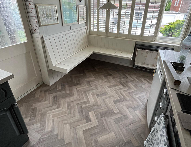 Nick fitted Karndean flooring to our en-suite bathroom and herringbone flooring to our daughter’s apartment. He is such a perfectionist and did an amazing job. A master craftsman, we are really delighted with the results, it certainly exceeded our expectations. Pricing competitive too.